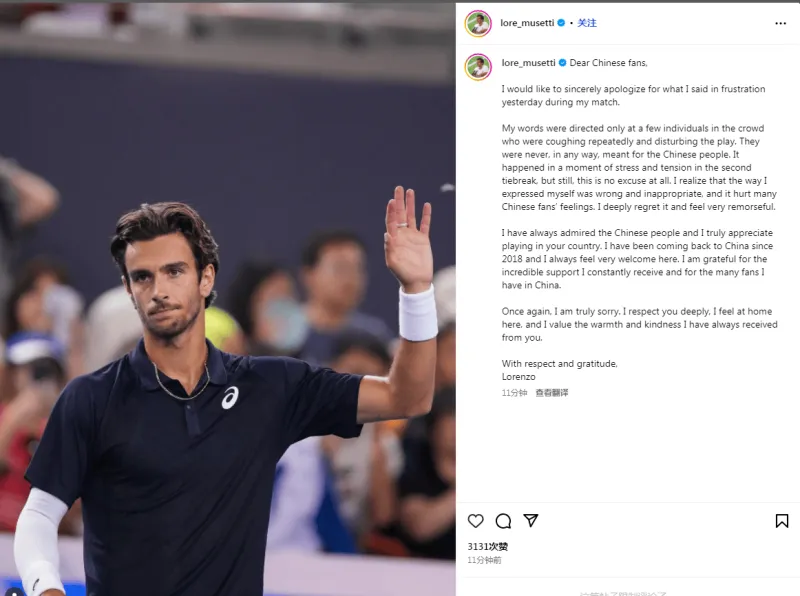 剛剛,穆塞蒂更新社媒,向中國球迷進(jìn)行了道歉。