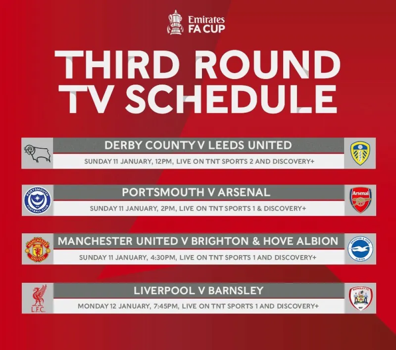 曼聯(lián)對布萊頓的足總杯第三輪比賽將于1月11日星期日英國時(shí)間下午4:30開(kāi)球!