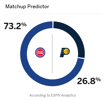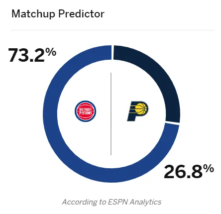 [流言板]ESPN預測明日活塞vs步行者比賽:活塞勝率73.2%占據上風(fēng)