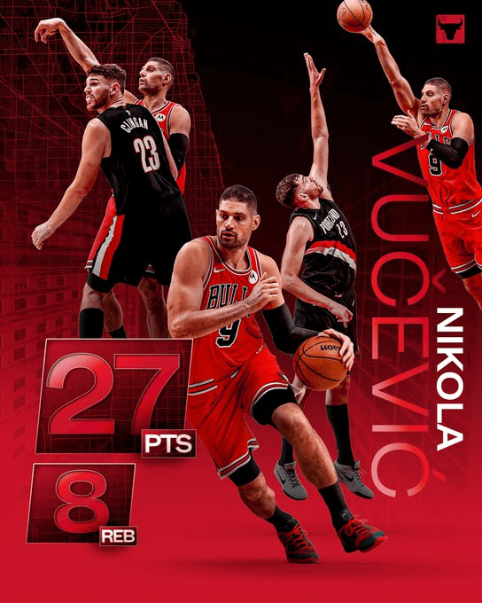 [流言板]公牛官方發(fā)布武切維奇數據海報:全場(chǎng)27分8板,命中絕殺球!