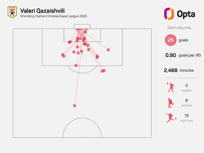 [流言板]卡扎伊什維利本賽季運動(dòng)戰25球,有紀錄以來(lái)中超歷史最佳