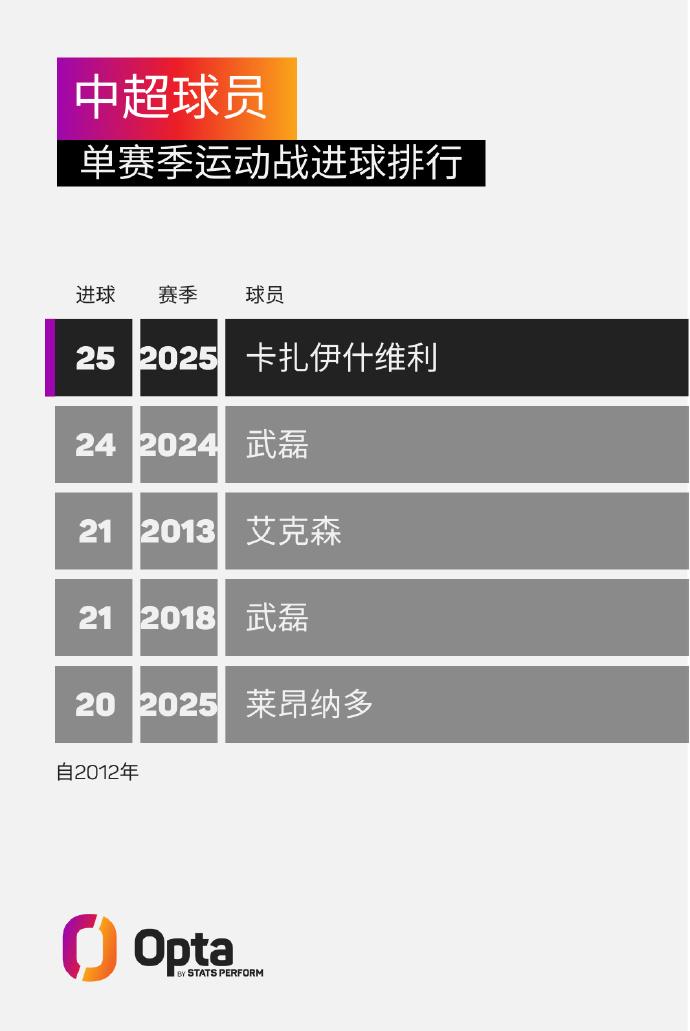 此前的什維賽季史最記錄是2024賽季上海海港隊武磊的24粒運動(dòng)戰進(jìn)球,他在那個(gè)賽季合計攻入34球,運動(dòng)有紀刷新了中超單賽季進(jìn)球紀錄。超歷