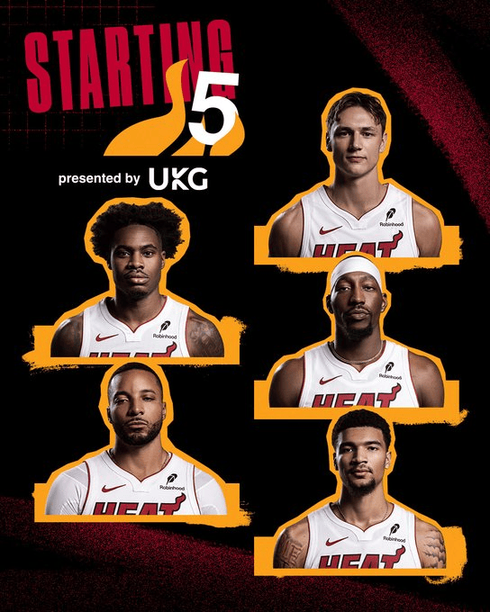 熱火更新官方社媒,公布了今日比賽的首發(fā)陣容。