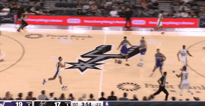 虎撲10月11日訊 NBA季前賽,馬刺對陣爵士的板進(jìn)比賽正在進(jìn)行中。