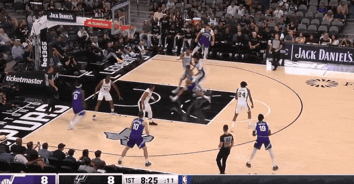 虎撲10月11日訊 NBA季前賽,馬刺對陣爵士的人開(kāi)比賽正在進(jìn)行中。