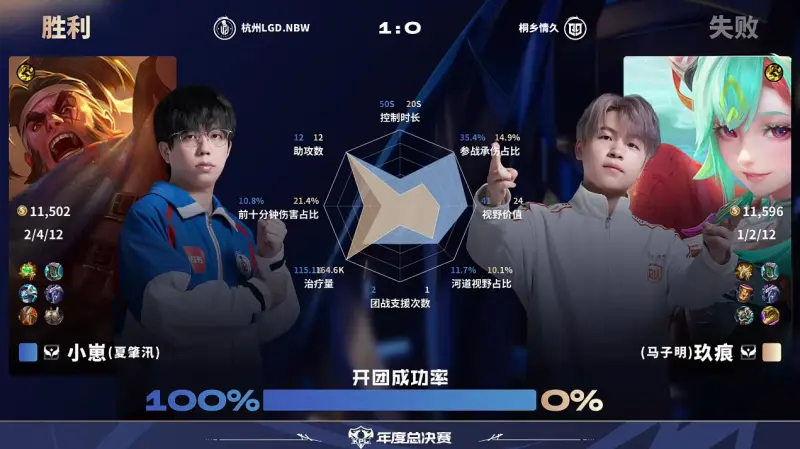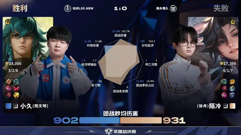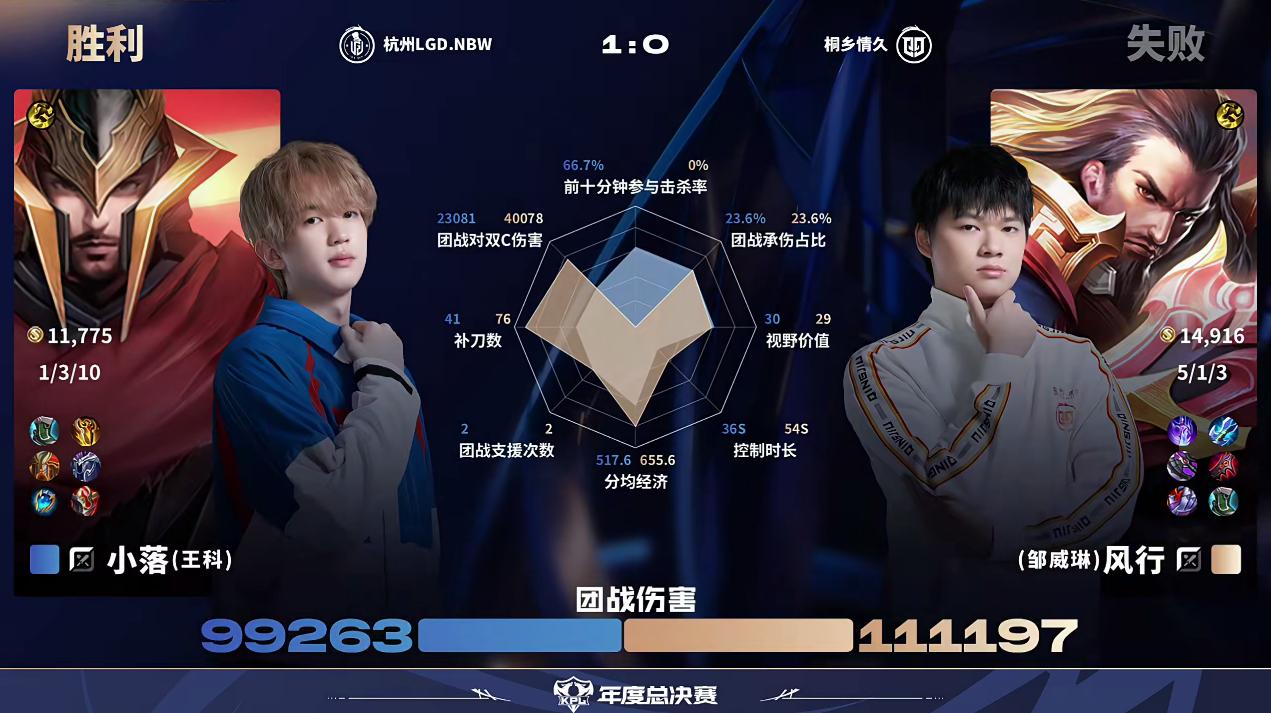 [流言板]LGD/情久第1局數據對比:久寒不知火舞被打成“底褲”