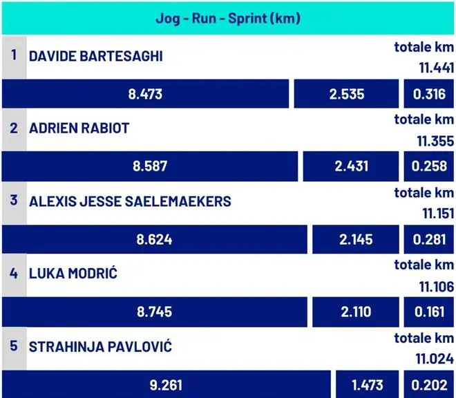 繼德比戰跑出11.45公里后,本場(chǎng)對陣藍鷹巴爾泰薩吉再度跑出了11.44公里的隊內最長(cháng)距離,奔跑時(shí)的平均速度達到19.7 km/h,僅次于萊奧排名第2。