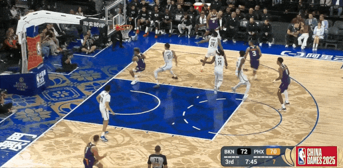 虎撲10月10日訊 NBA季前賽,太陽(yáng)對陣籃網(wǎng)的陽(yáng)追比賽正在進(jìn)行中。