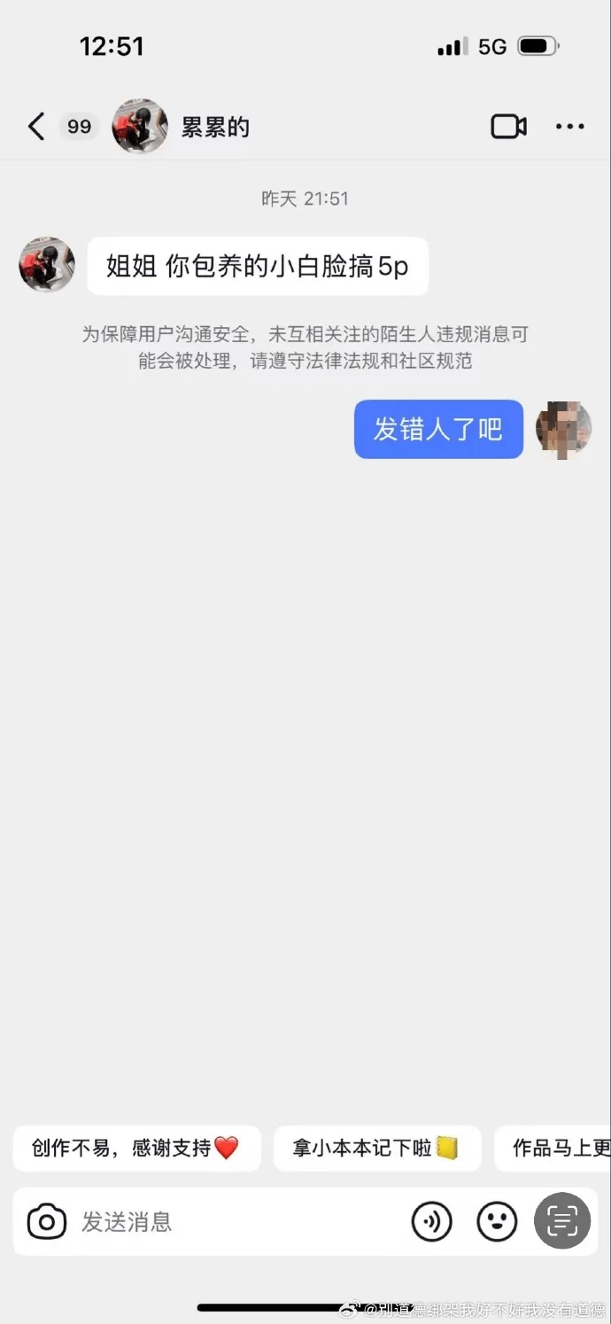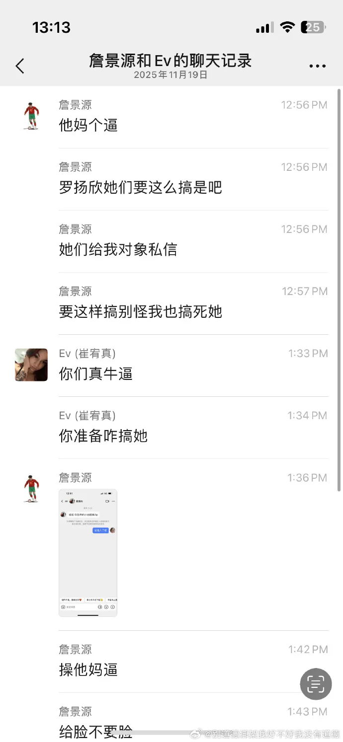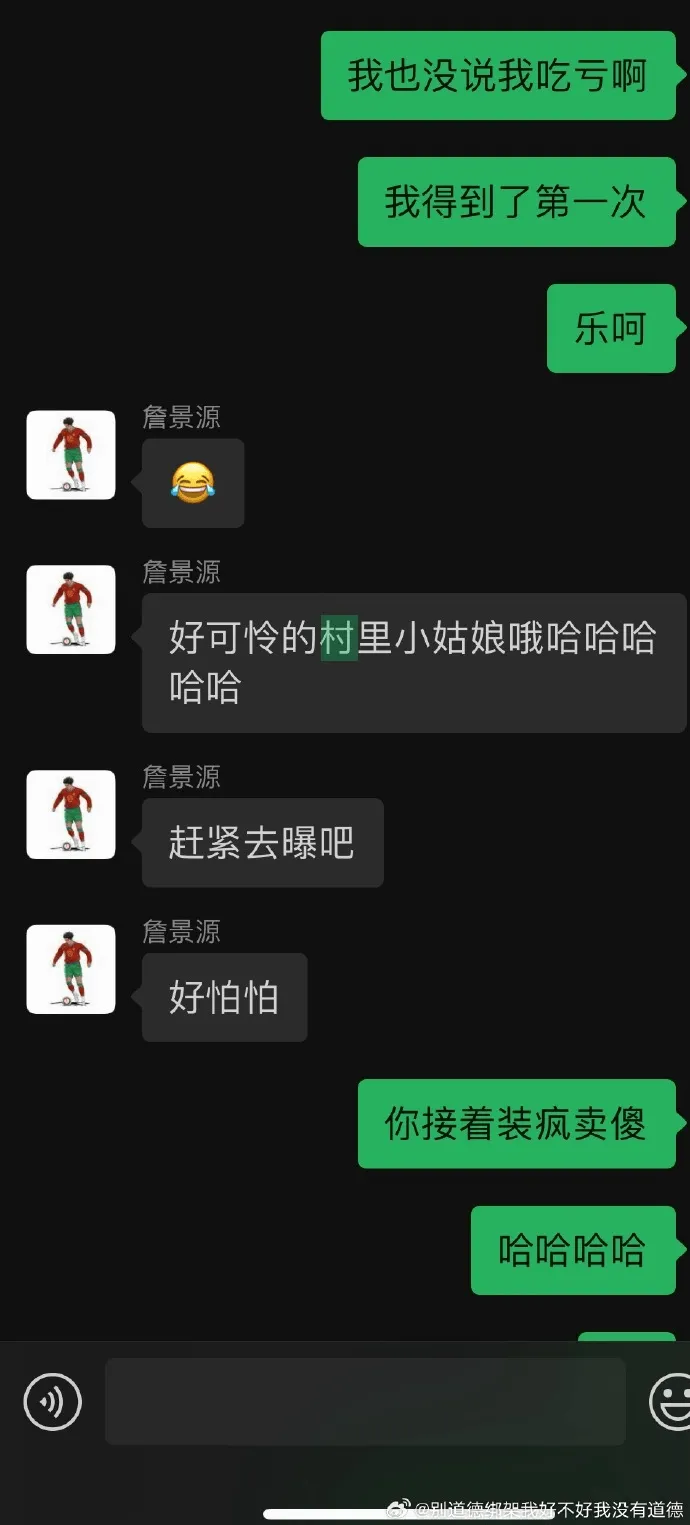 此外,詹景源曾向我及他人發(fā)表低俗、冒犯性言論(附聊天記錄等證據),其行為既違背倫理道德,也涉嫌違法。
