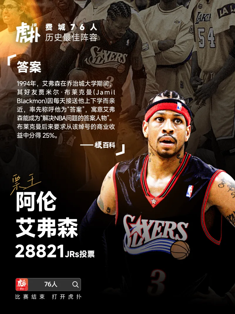 JRs共同評選出的76人隊史最佳為阿倫-艾弗森,這與你心目中的最佳球員是否一致呢?
