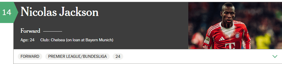 杰克遜是當時(shí)最佳的選擇,但他幾乎不可能滿(mǎn)足轉會(huì )所需的條件(各項賽事首發(fā)40場(chǎng)),拜仁也不太可能在不大幅提高此前商定的轉會(huì )費(6500萬(wàn)歐元)的情況下簽下他。