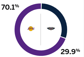[流言板]ESPN預測明日比賽勝率:湖人高達70.1%,鵜鶘僅為29.9%