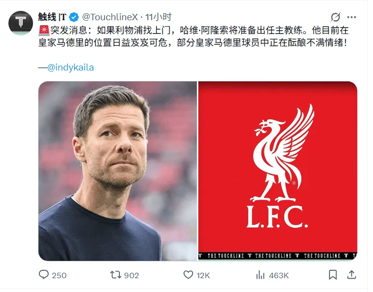 TouchlineX: 如果利物浦找上門(mén),果利哈維·阿隆索將準備出任主教練由levinso1 發(fā)表在皇馬專(zhuān)區 https://bbs.hupu.com/realmadrid