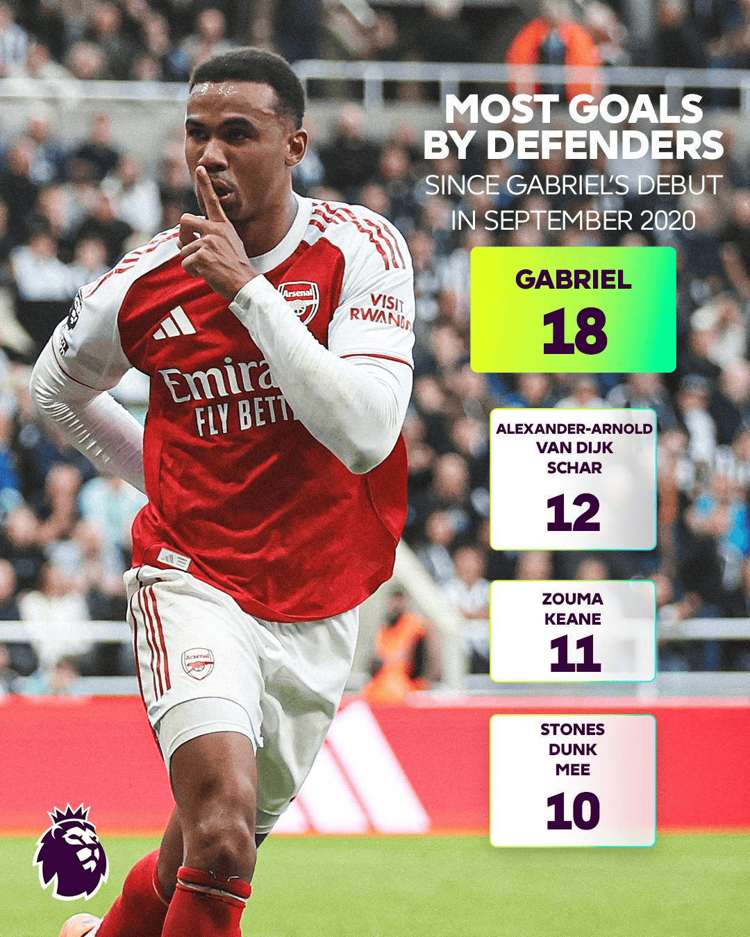 虎撲09月29日訊 加布里埃爾在昨天的英超聯(lián)賽頭球絕殺紐卡。英超官方也發(fā)布榜單,球榜統計加布里埃爾英超首秀以來(lái)的范戴英超后衛進(jìn)球榜。