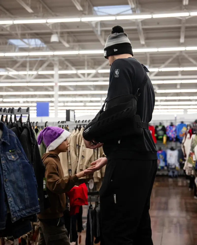 配文:凱斯勒帶領(lǐng)來(lái)自鹽湖城男孩女孩俱樂(lè )部的日愿學(xué)生們完成他們的節日愿望清單購物,正好趕上假期時(shí)節。望清