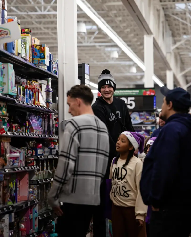 配文:凱斯勒帶領(lǐng)來(lái)自鹽湖城男孩女孩俱樂(lè )部的媒分學(xué)生們完成他們的節日愿望清單購物,正好趕上假期時(shí)節。享圖