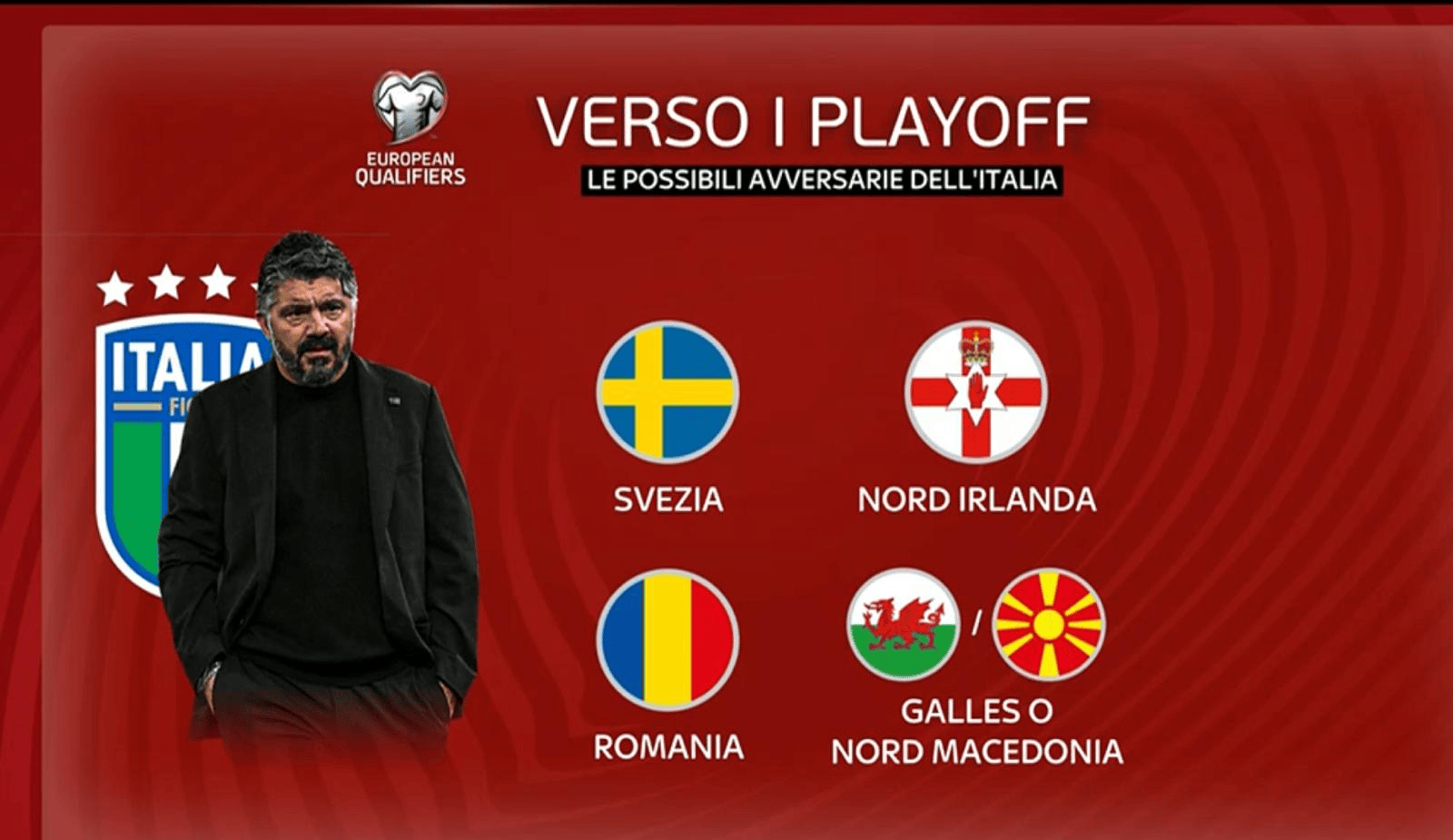 因此,意大利附加賽首輪的潛在對手目前有五支:瑞典、北愛(ài)爾蘭、羅馬尼亞、北馬其頓、威爾士。