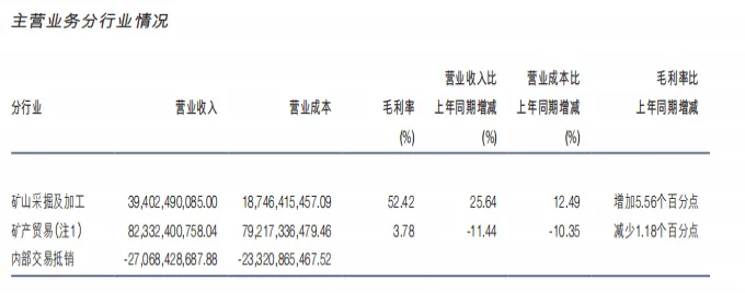 貿易業(yè)務(wù):通過(guò)子公司IXM(國際金屬交易平臺)將礦山產(chǎn)能延伸至全球商品交易,營(yíng)業(yè)收入553.71億,占比約58%(扣除內部抵消部分)。