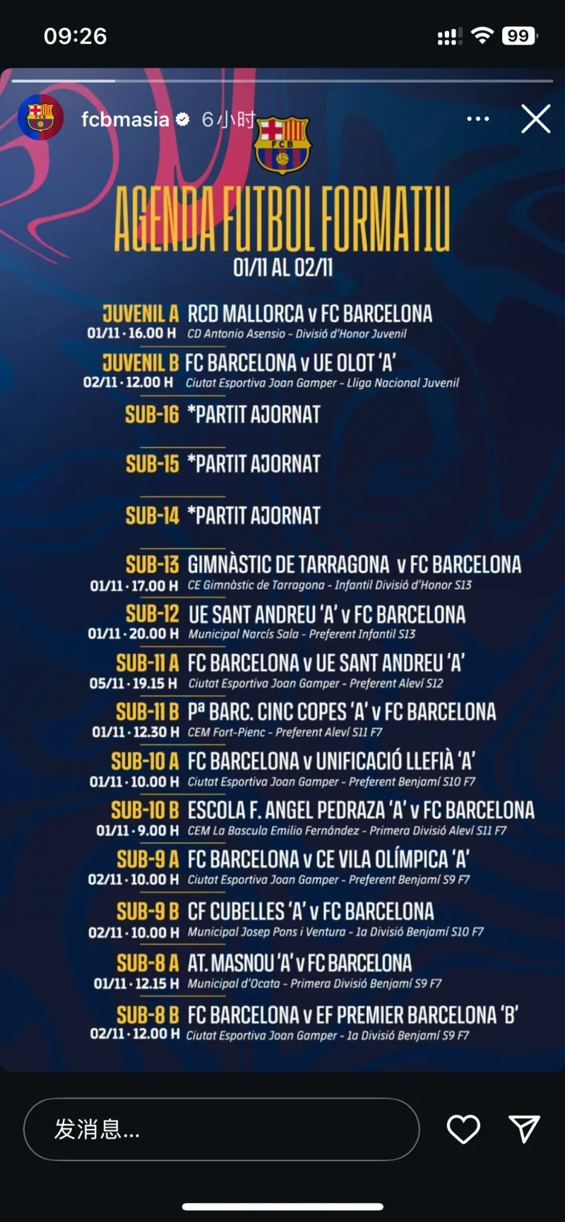 拉瑪西亞官方號終于知道干點(diǎn)正事了,本周比賽表上賽季每周都發(fā),拉瑪這賽季前倆月仿佛把這事忘了,西亞這兩周終于想起來(lái)了。時(shí)間