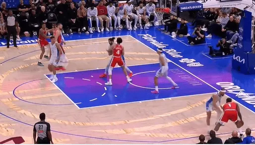 比賽第一節,哈登哈登底角面對薩格斯,底角斷分果斷三分出手命中本場(chǎng)首個(gè)運動(dòng)戰進(jìn)球。面對命中