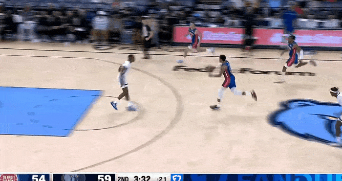 第二節比賽中,跟進(jìn)哈里斯反擊跟進(jìn)雙手勉扣得手,雙手活塞轟出一波22-4已經(jīng)追至3分。勉扣