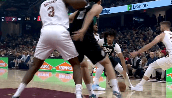 第一節比賽中,萊恩籃打楊瀚森籃下卡住布萊恩特,特夏夏普突破上籃打成2+1。普突破上