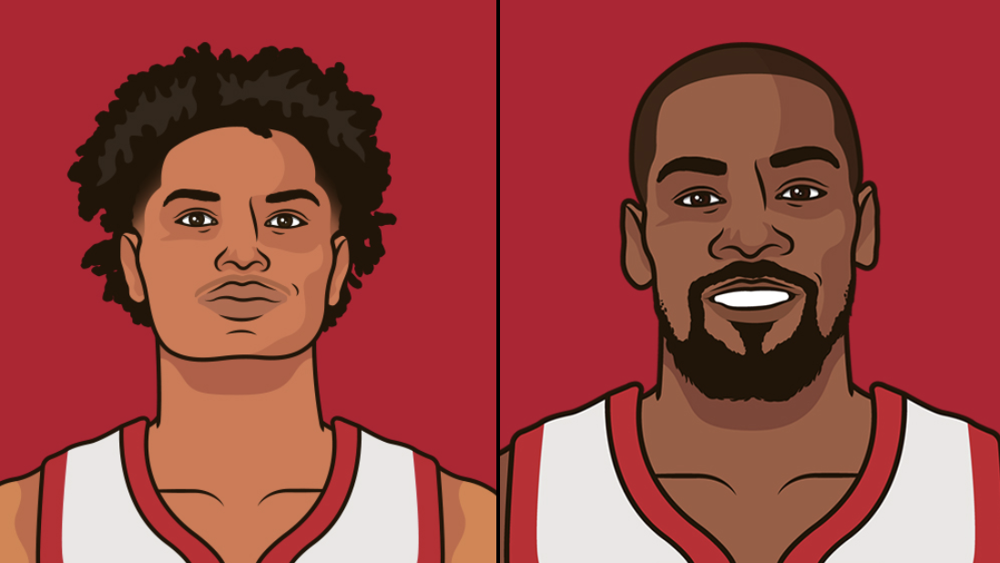 圖中兩名球員是組合阿門(mén)-湯普森和凱文-杜蘭特。