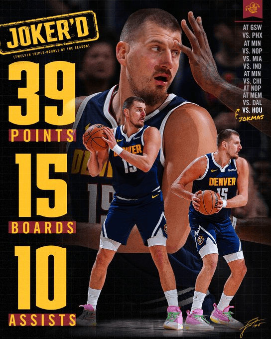 [流言板]掘金官方發(fā)布約基奇數據海報:全場(chǎng)砍下39分15籃板10助攻