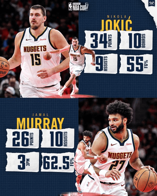 [流言板]內外雙核!掘金官方曬約基奇默里數據海報:合砍60+12+19
