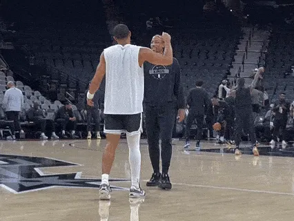 阿贊在馬刺的最后一個(gè)賽季,依舊被風(fēng)雨籠罩。球隊核心德里克?懷特與阿德飽受傷病困擾,戰績(jì)起伏不定。與此同時(shí)阿贊的父親也因病離世,因此他不得不申請離隊料理后事,出發(fā)前的那個(gè)夜晚,波波維奇來(lái)到了阿贊的房間。老帥沒(méi)有多余的安慰,只是靜靜坐在那里,陪著(zhù)弟子哭了兩個(gè)小時(shí),然后輕聲告訴阿贊:“直到你出發(fā)前,我都不會(huì )走,我不會(huì )把你自己丟在這里?!?/p>