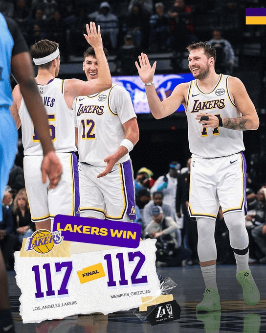 賽后,曬贏(yíng)湖人官方曬出贏(yíng)球海報:東契奇、球海里夫斯、拉拉維亞出鏡。