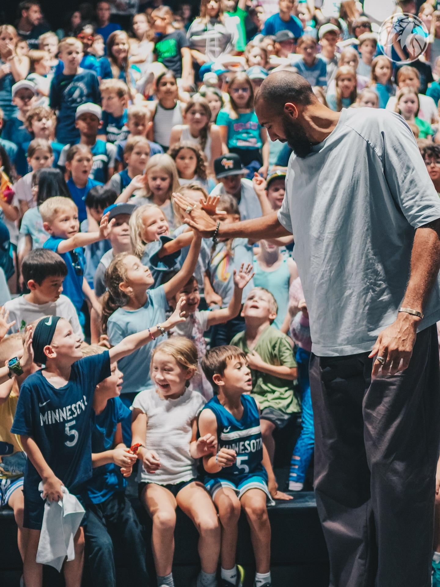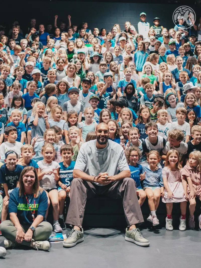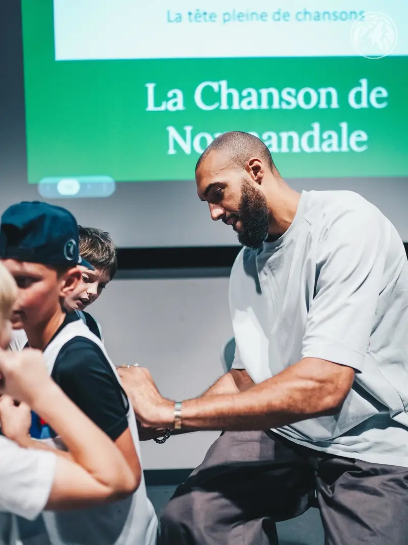 “魯迪-戈貝爾今日來(lái)到了學(xué)校!孩們互動(dòng)”森林狼官方附文道。森林