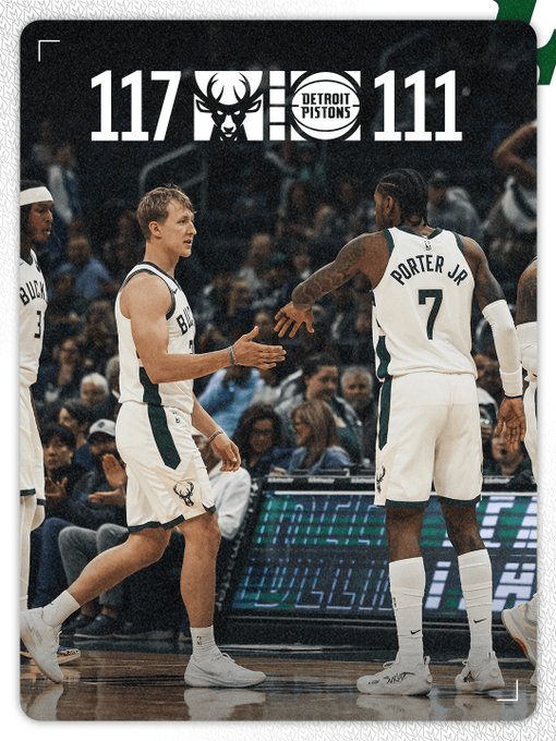 “主場(chǎng)獲勝。數據勝利”雄鹿隊附文道。海報活塞