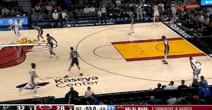虎撲10月09日訊 NBA季前賽,熱火對陣馬刺的接球比賽正在進(jìn)行中。
