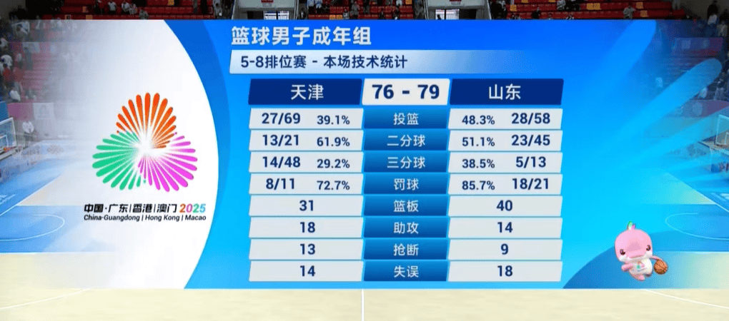 全場(chǎng)比賽,山東79山東79-76戰勝天津。板全
