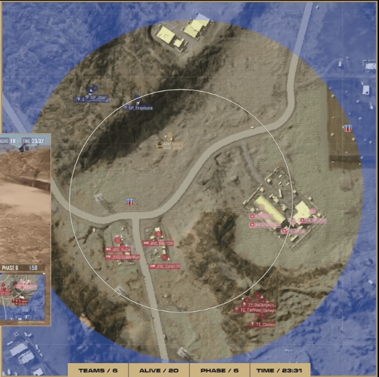 階段6,圈型刷在圣馬丁北部三叉路口附近,淘汰JDG與SP在房區交戰,賽后TE拿到信息前來(lái)勸架,組小組賽SP先被淘汰出局,吃雞JDG與TE也有減員。單局