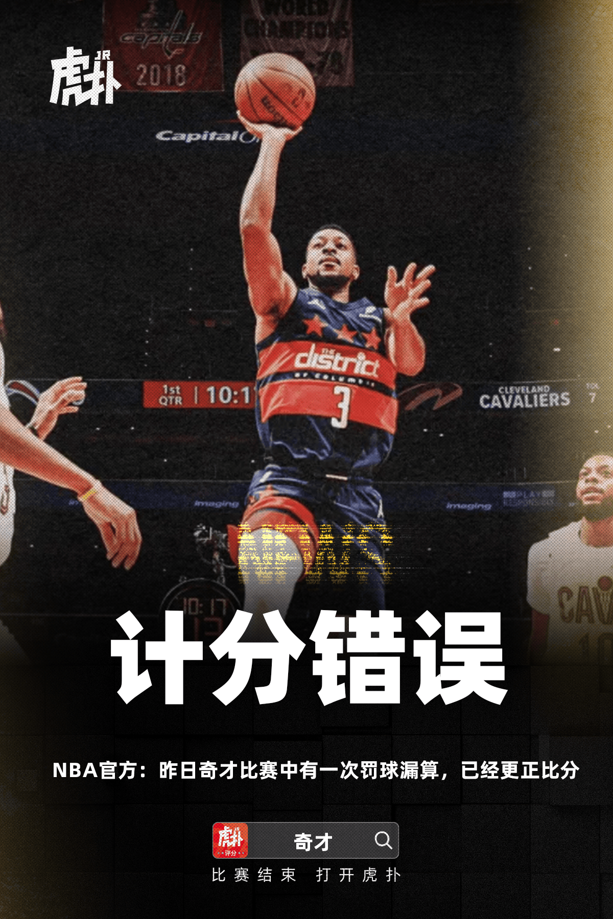 剛剛,NBA官方宣布,在昨日與奇才主場(chǎng)進(jìn)行的這場(chǎng)比賽中,出現了一次計分錯誤。