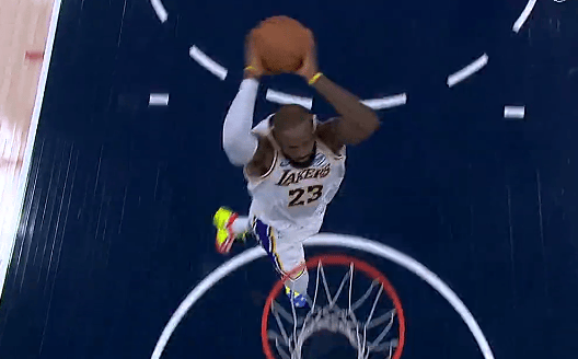 [流言板]詹姆斯中線(xiàn)搶斷后暴扣連拿4分,目前得到14分、湖人全隊22分