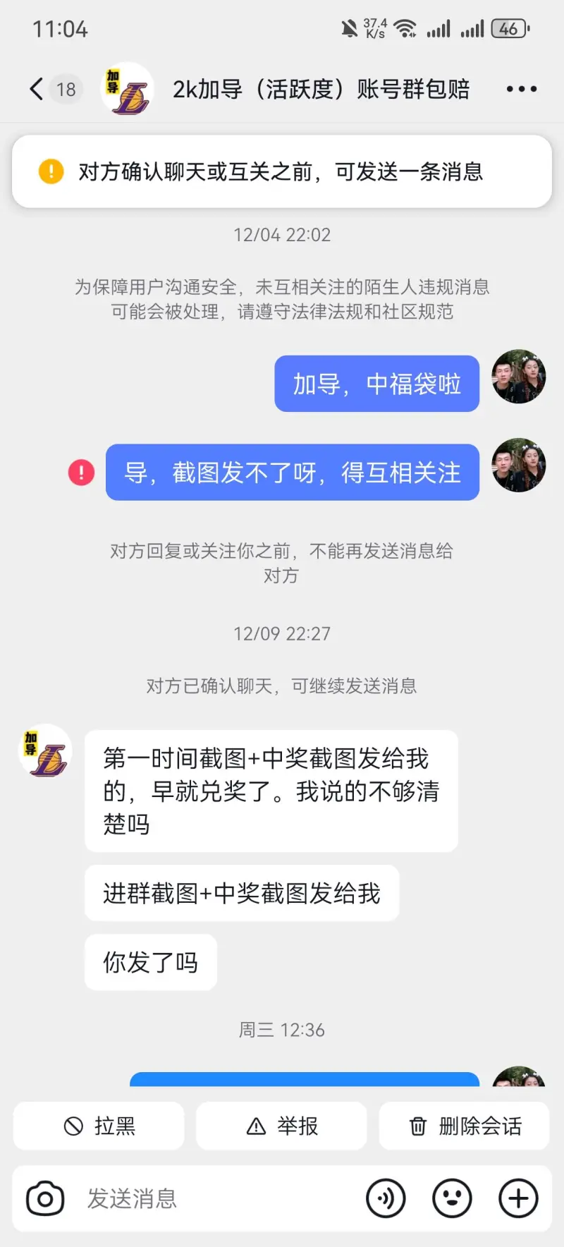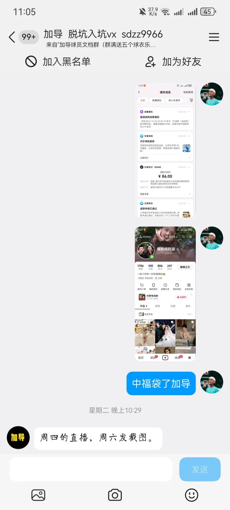 本來(lái)他這個(gè)福袋不給不打算要了,他還有理了?還給我回企鵝說(shuō)這話(huà),導原我不得不說(shuō)這個(gè)人是播加真不行,大家看清他的導原面目吧,我給他評論一條刪一條,播加如果有理為什么要刪我評論???
