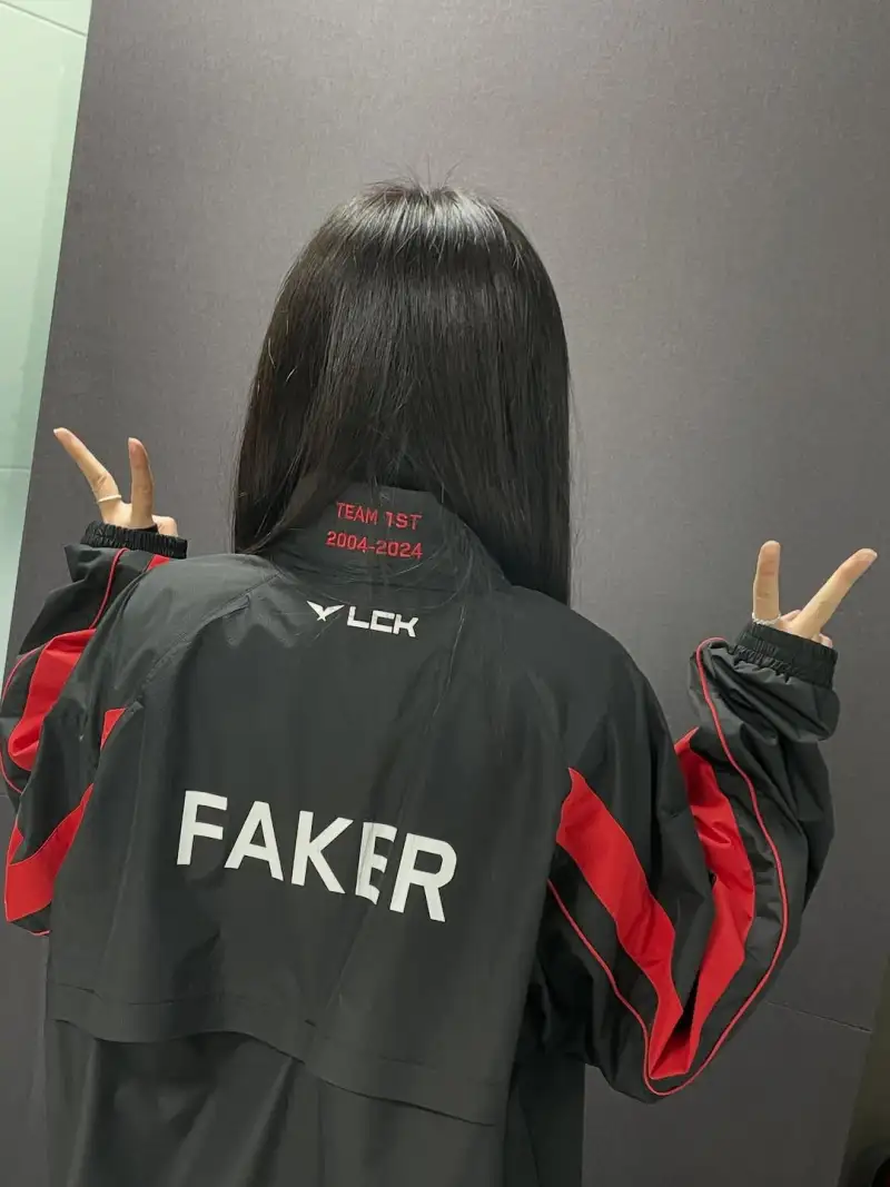 虎撲11月22日訊 韓國女子演唱組合臉紅的思春期成員安智煐跟Faker合影:
