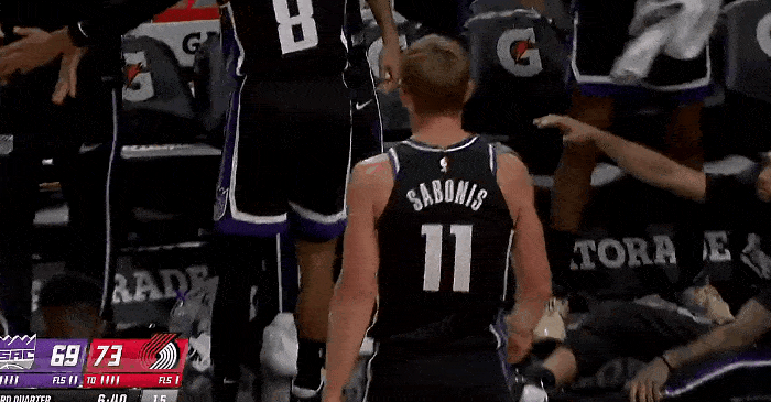 [流言板]犯規危機!薩博尼斯身背5犯下場(chǎng),格蘭特搶下前場(chǎng)板打成2+1