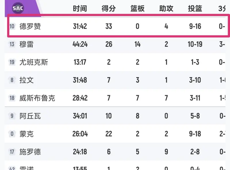 國王和森林狼比賽正在進(jìn)行,德羅贊打的嫌棄多好啊,穩定輸出,右快有球無(wú)球也都能打,德羅的即關(guān)鍵時(shí)候也硬,贊還最好戰力防守沒(méi)那么不堪