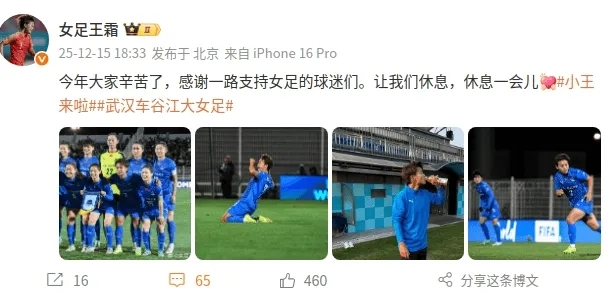 賽后,年征王霜在微博曬出照片并寫(xiě)道:“今年大家辛苦了,程結感謝一路支持女足的束王霜社球迷們。讓我們休息,媒大們休休息一會(huì )兒。家辛”