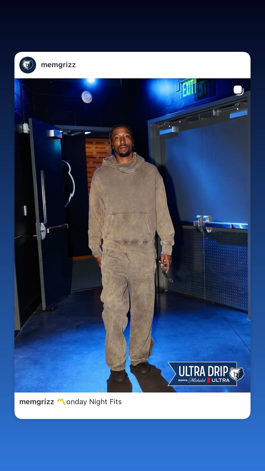 虎撲11月25日訊 灰熊球員波普更新個(gè)人社媒,曬出今日賽前入場(chǎng)穿搭照片。前入