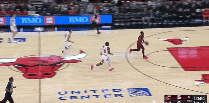 虎撲10月10日訊 NBA季前賽,騎士對陣公牛的快攻開(kāi)局比賽正在進(jìn)行中。