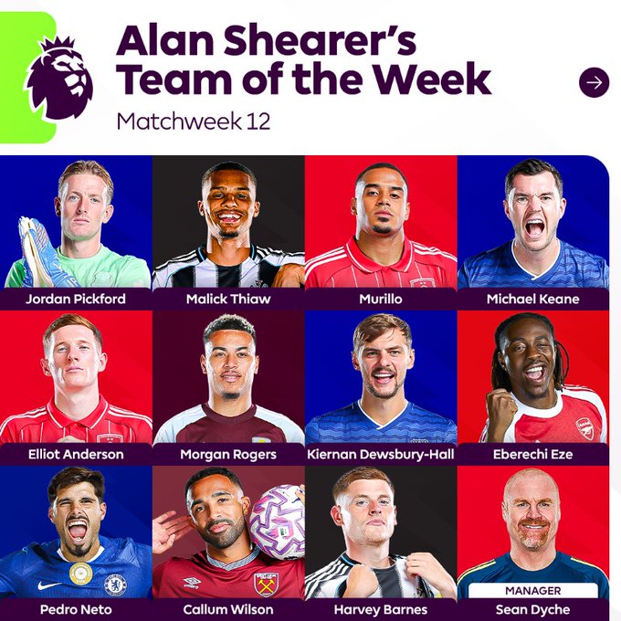虎撲11月25日訊 英超官方公布阿蘭-希勒評選的聯(lián)賽第12輪最佳陣容,具體如下: