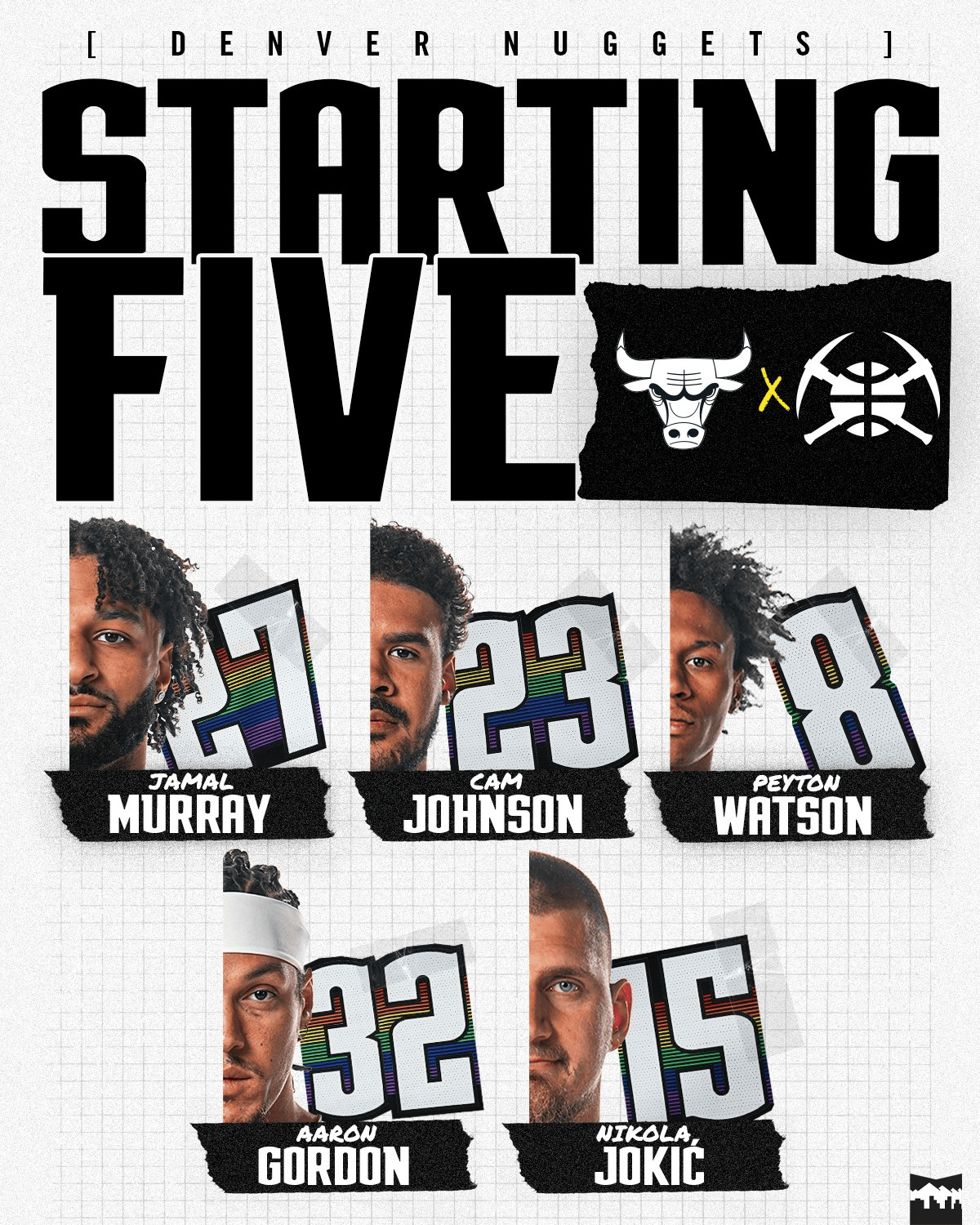 賽前,遜戈掘金官方公布本場(chǎng)比賽球隊首發(fā):