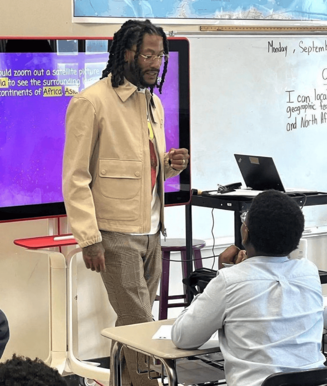 照片中羅斯正在與青少年傳授自己的激勵境人生經(jīng)驗。