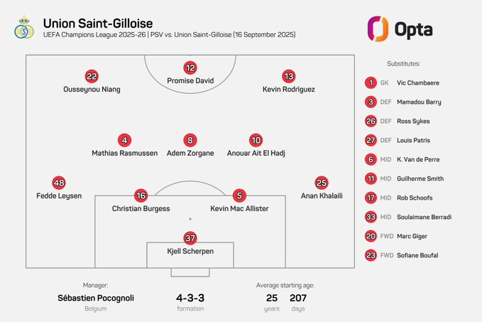 而在賽前公布的發(fā)陣首發(fā)陣容中,圣吉羅斯有多達10名球員迎來(lái)歐冠首秀,容人僅有門(mén)將凱爾-謝爾彭此前有過(guò)征戰歐冠的參加場(chǎng)比經(jīng)歷(2024 -2025賽季為格拉茨風(fēng)暴出戰6場(chǎng)比賽)。