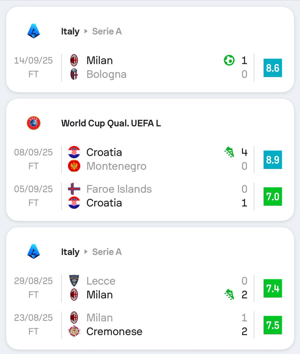 最近兩場(chǎng)比賽,續場(chǎng)莫德里奇更是評分盡顯功力,連續收獲8.9和8.6的過(guò)近高分高分。